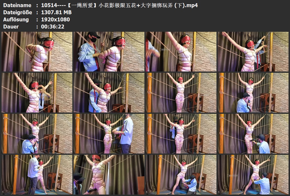小花影紧紧的五花大绑,绳子紧紧勒进她肉里,固定捆绑在两个柱子中间,发型她特别能忍,绑很紧,各种虐都不出声。口球堵嘴,抚摸、鞭打、勒脖子、浑身蹂躏,五花双臂收紧捆绑折磨。后面大字捆绑,双手吊在柱子上拉开,筋膜枪按摩,她终于有反应了
