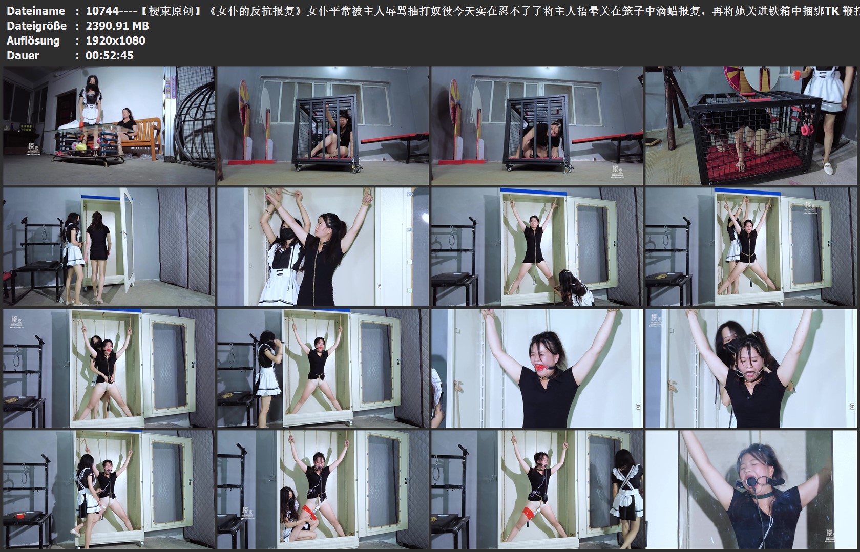 【樱束原创】《女仆的反抗报复》女仆平常被主人辱骂抽打奴役今天实在忍不了了将主人捂晕关在笼子中滴蜡报复,再将她关进铁箱中捆绑TK 鞭打 充气口塞 股绳折磨!锁柜子里棒棒震穴