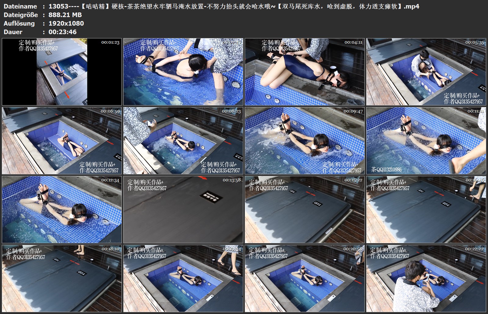 在驷马拘束下,茶茶只能看着水位线满满的上升,直到没过茶茶的口鼻才停止——在这个姿势下,茶茶只能在驷马姿势下拼尽全力的抬头才能不被呛到。