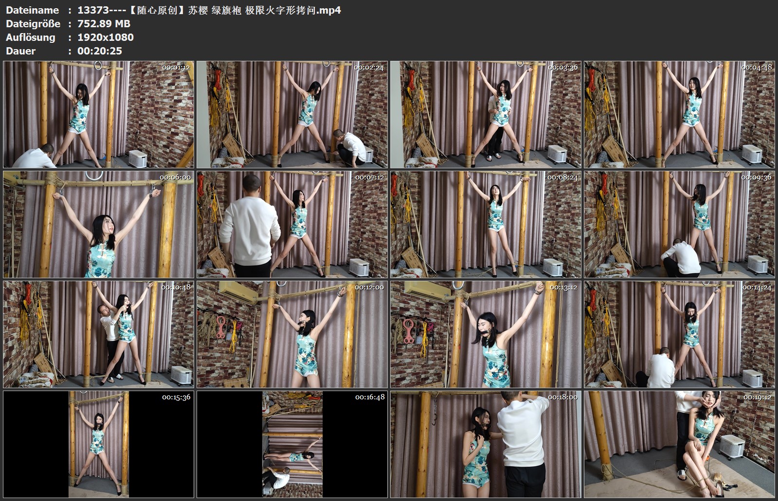 【随心原创】苏樱 绿旗袍 极限火字形拷问 ...