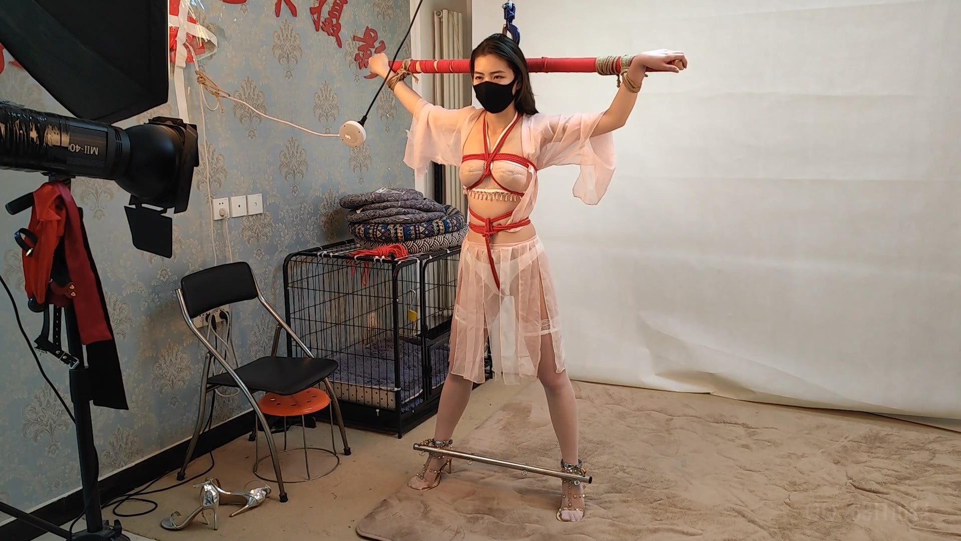 【束缘阁】文慧白衬衣皮裙 柱子全身固定