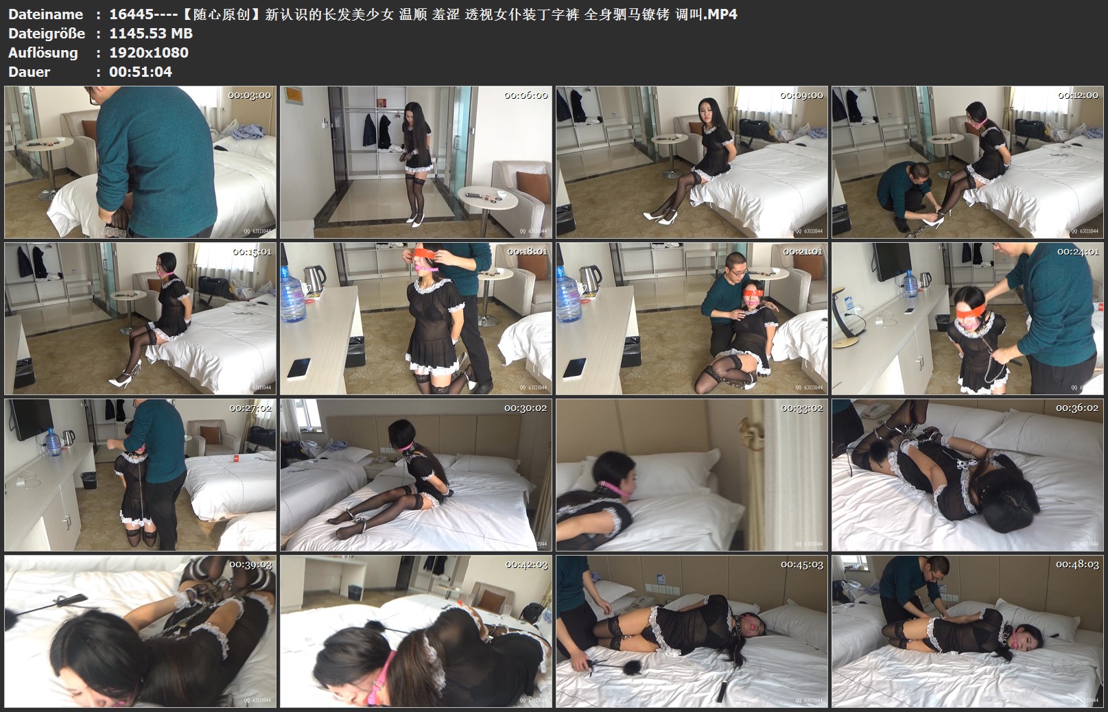 【随心原创】新认识的长发美少女 温顺 羞涩 透视女仆装丁字裤 全身驷马镣铐 调叫