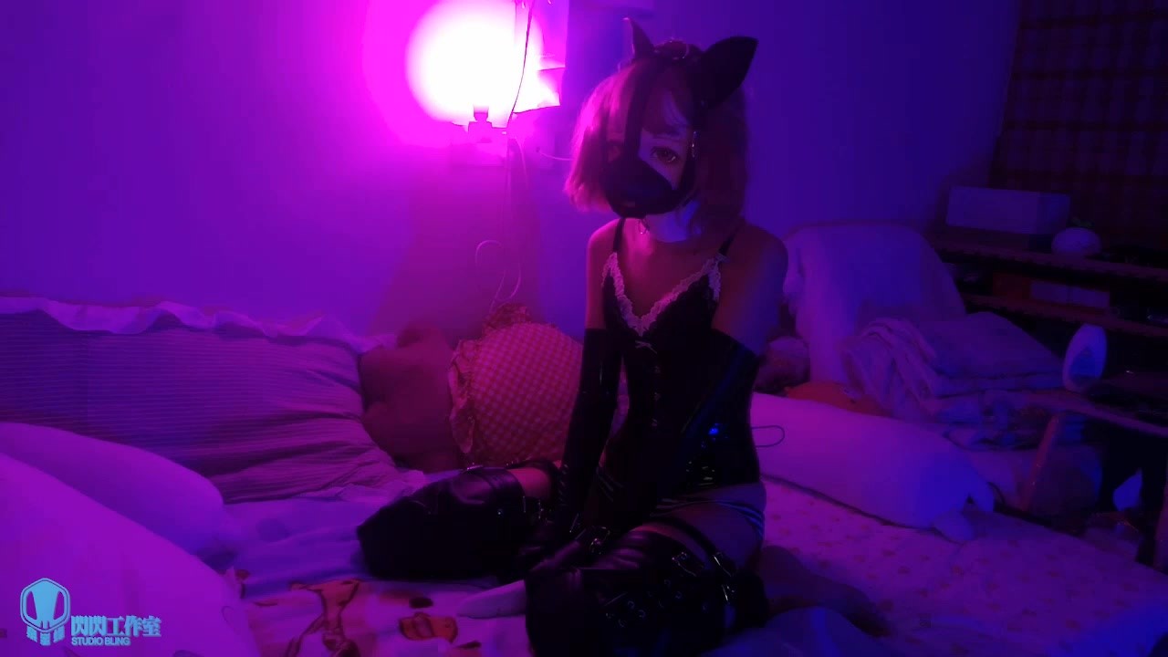 由于KIG皮还没到货,所以让软软也带上了乳胶手套,穿上漆皮束腰