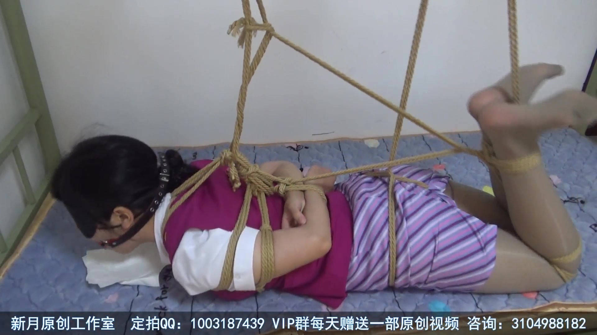 3、好不容易弄清楚状况,却发现自己完全无法解开,此刻,贼人回来了,把玉箫直接驷马绑得超紧。固定在架子床上,股绳还被恶意拉扯吊绑,套上眼罩,塞了口球。