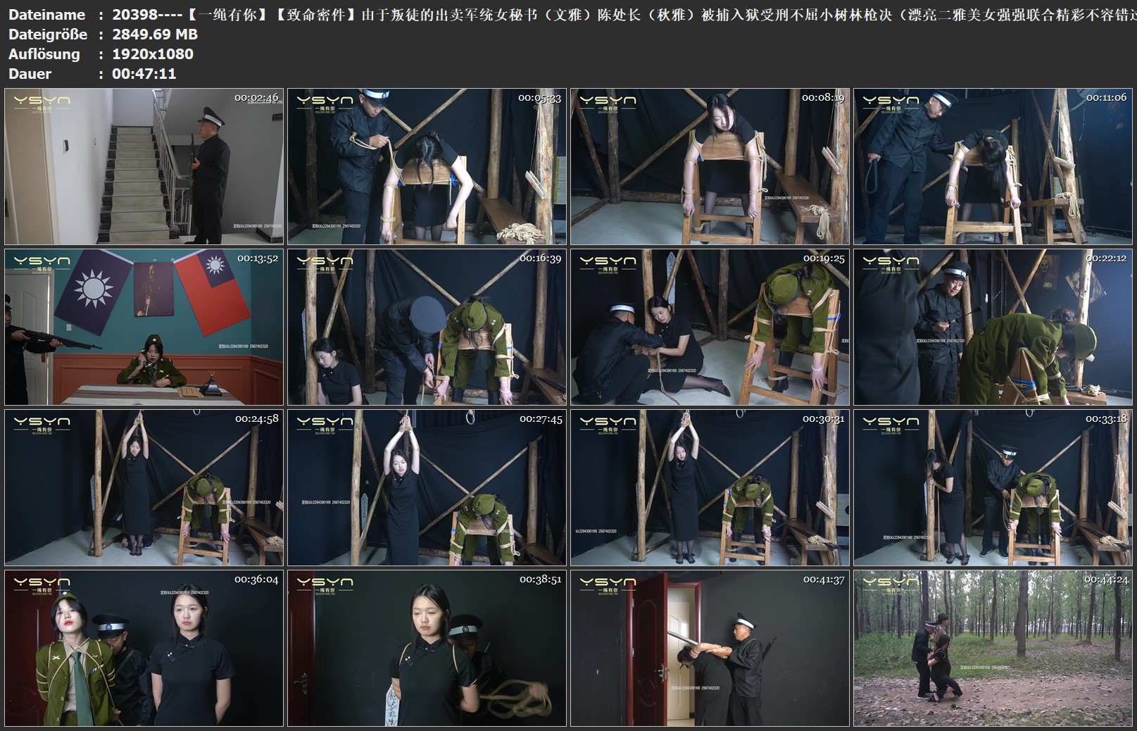 【一绳有你】【致命密件】由于叛徒的出卖军统女秘书(文雅)陈处长(秋雅)被捕入狱受刑不屈小树林枪决(漂亮二雅美女强强联合精彩不容错过)