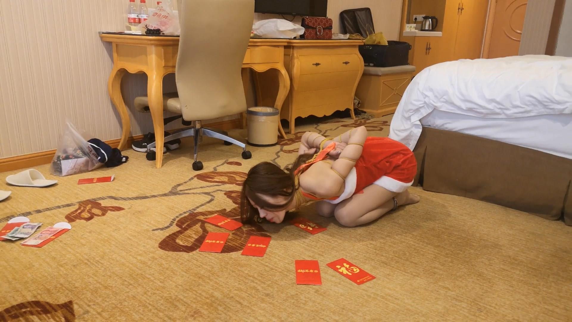 诺米 新年快乐 红包游戏 五花大绑 用嘴捡地上的红包 捡到多少就要多少钱 十个红包 六次机会 里面有各种金额的钱 団缚在床上 打屁股 挠脚 呻吟喘息