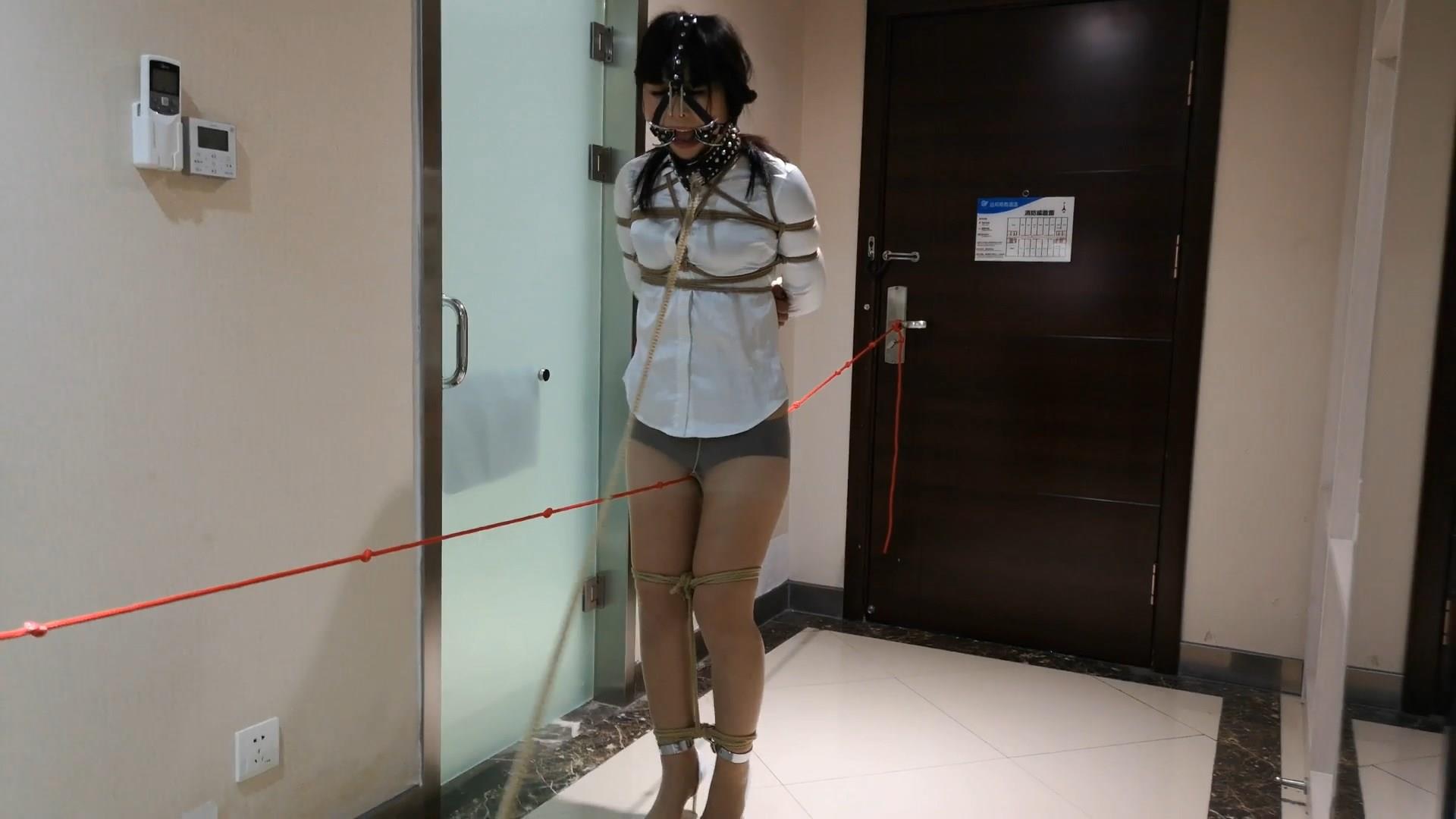 【束缘阁】文慧白衬衣皮裙 柱子全身固定