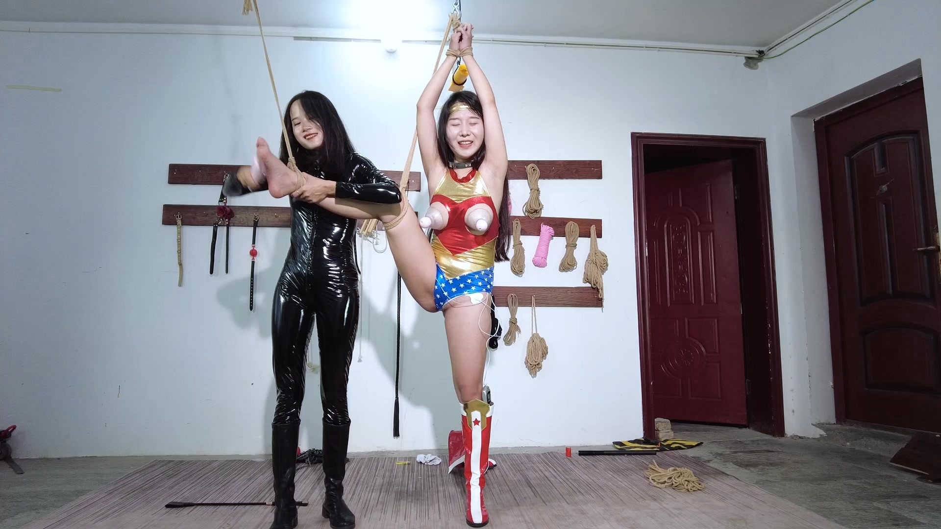 【樱束原创】《神奇母狗与反派的较量》反派发现了神奇女侠的弱点将她制服让她无法使出特殊能力!将她的战服胸前剪烂露出巨R戴上吸乳器!单脚吊起鞭打/TK母狗脚心腋下!开口器开口震...