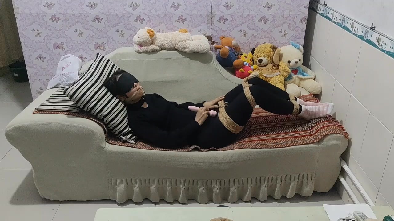 少妇自己在家无聊,瘾上来了,拿出东西开始自嗨。觉得不过瘾,又用绳子把自己腿脚绑上,丝袜勒嘴。正玩的高兴的时候,结果被下班回到家里的老公看到,后果不用想,绑好,让她挣扎一会,关灯睡觉!!!
