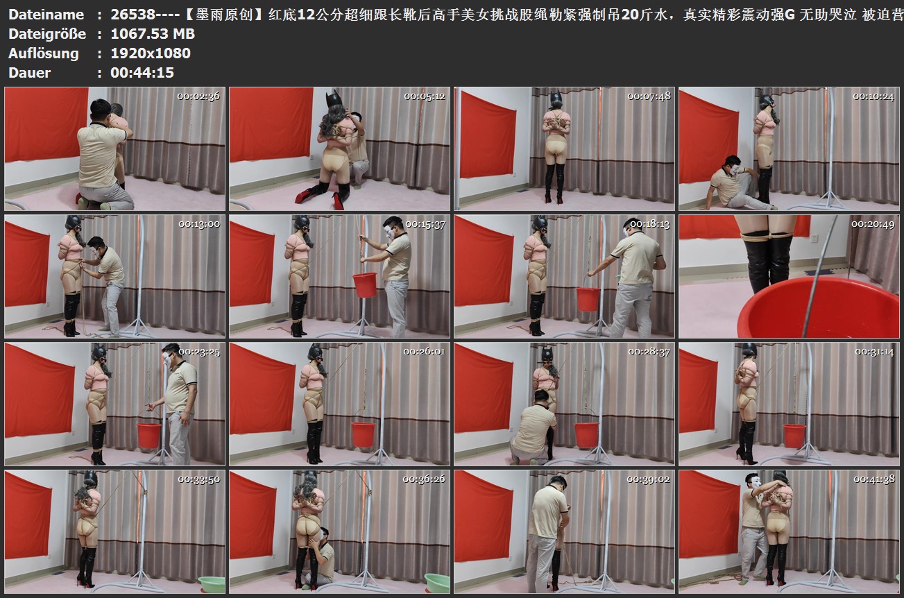 【墨雨原创】红底12公分超细跟长靴后高手美女挑战股绳勒紧强制吊20斤水,真实精彩震动强G 无助哭泣 被迫营业 带耳机观看