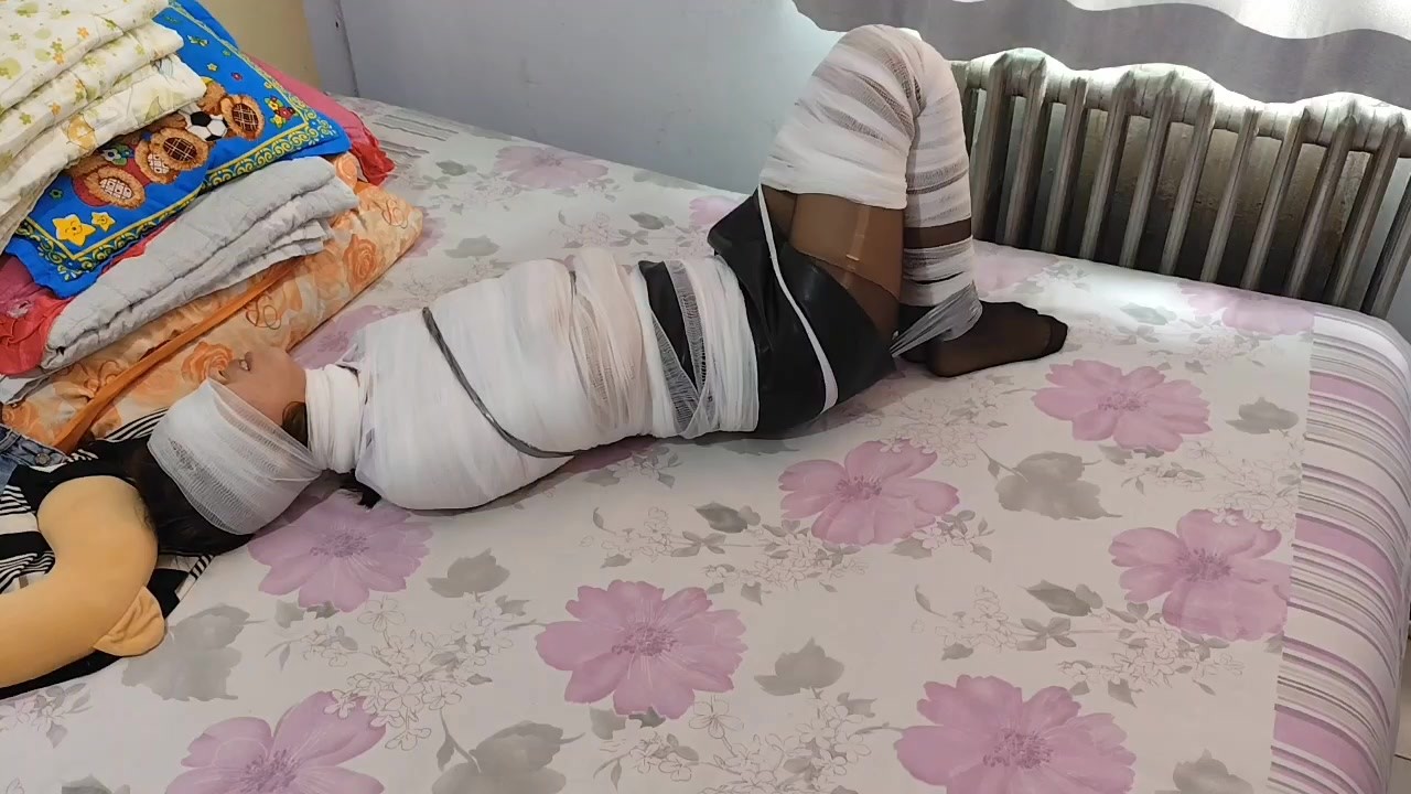 从网上买的绷带到了,我让快递员放到门口,等老婆下班回家,看到快递会不会打开,打开之后看到绷带,有什么想法。一切跟我想的一样,她打开包裹之后,看到绷带,很嫌弃。趁她睡着之后,给她来个全包,[X_X]放置,惊不惊喜