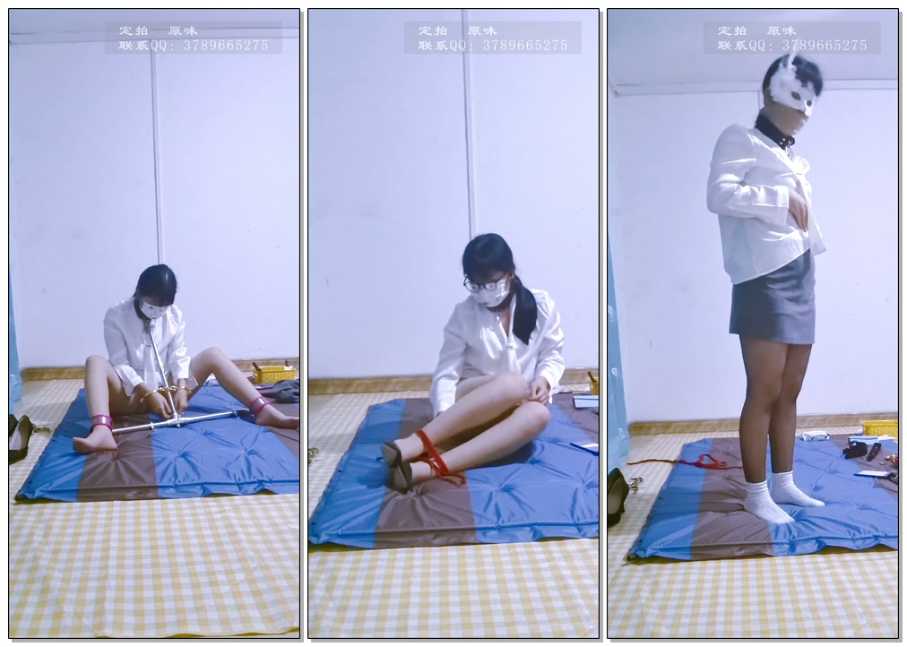 2、肉丝股绳→衬衫短裙高跟鞋→脚镣;☆begin一、手持自拍(移动机位) 1、戴脚镣行走,边走边拍脚; 2、坐到垫子上,拍高跟丝袜脚; 3、脱鞋,拍丝袜脚;二、固定机位 1、穿鞋走到镜头前面向镜头,脱下短裙,漏出股绳,然后背对镜头跪下,爬到垫子上,取下脚镣,脱鞋把双脚铐在道具上,正面把项圈扣到道具上,把手铐扣在道具的扣环上,①躺下正面抬腿展示②侧身躺着展示③翻身趴着展示; 2、打开手铐,穿鞋,把股绳解开,用这个绳子把两脚绑起来,把高跟鞋绑在脚上,再用黑丝绑个驷马挣扎; 3、换穿绑手的黑丝,用脱下的肉丝蒙嘴,再穿上一双白短袜,用道具自带的手铐脚铐把左手和左脚铐在一起,右手和右脚铐在一起,先仰面躺着展示一会儿,接着起来趴跪一会儿,然后把手脚分开,再把双脚铐在一起,双手反铐,先跪一会儿,再躺一会儿展示腿和脚; 4、重新戴上脚镣,打开电脑,打开一个能打字的软件,把双手反铐,用脚打出自己的QQ号; 5、穿鞋走一圈,脱下短袜,穿鞋走一圈,取下堵嘴的丝袜;三、打开手铐,手持自拍(移动机位) 1、在地上走一圈,拍脚; 2、拍高跟脚; 3、脱鞋,拍短袜脚; 4、拍用脚打字的画面,屏幕上显示自己的QQ号; 5、脱短袜,拍丝袜脚; 6、穿上高跟鞋,拍高跟丝袜脚