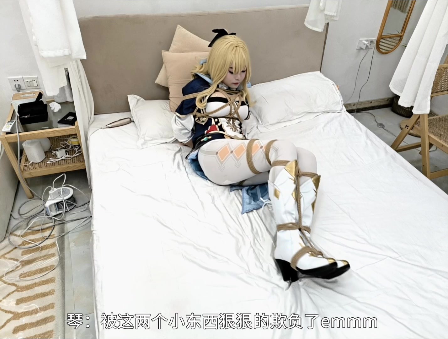 难得休假的琴团长,回到家中就开始了她的私密游戏。把自己捆起来,假装起被盗宝团绑架,随意蹂躏自己的身体,被[X_X]不停欺负敏感的地方。被郊狼随意欺负自己的屁股。结果在解缚的时候,还被旅行者空发现了。把解缚用的剪刀藏了起来,还把郊狼的电力设定成了随机数值最大的可能。为了摆脱郊狼痛苦的惩罚,琴团长只能在电力最小的时间段时尽快的找到剪刀解缚。可惜最终没能成功,落得一个失禁的下场