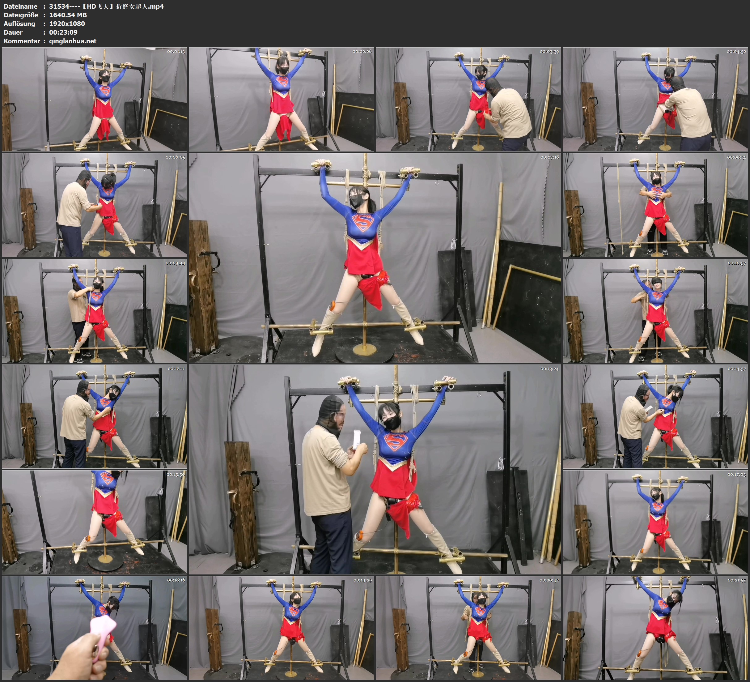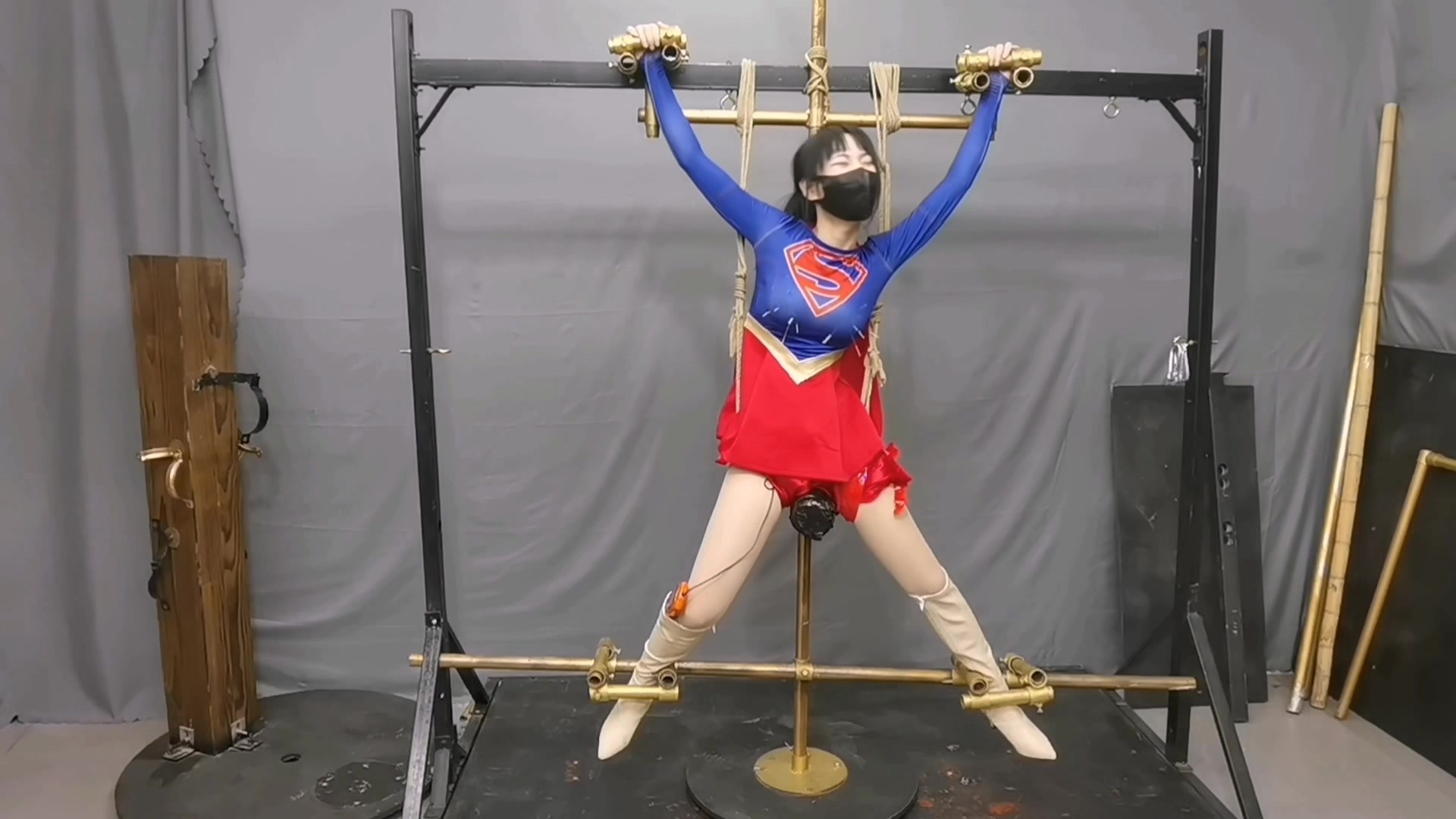 女超人因不敌蒙面男子惨遭男子X字束缚
