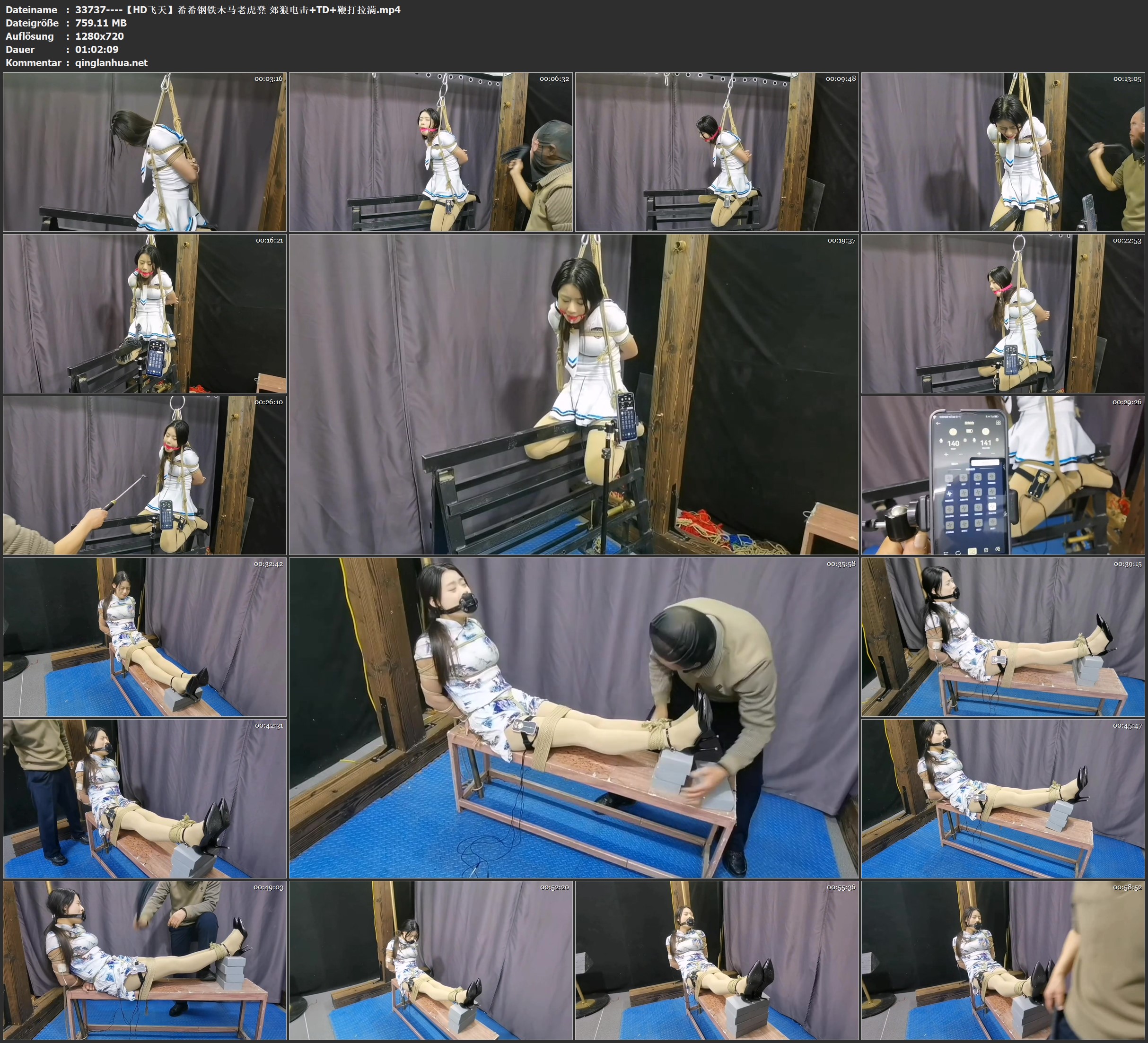 深度调校,也是跟飞天工作室的首次合作。这次拍的是希希,也叫过凉兮、亚楠、熙熙。这次安排的是高强度调较,先让希希把TD放入私密部位,把希希放置在钢铁木马上,郊狼电击拉满,刺激的希希娇喘不断。之后在把希希绑在老虎凳上,垫四块转,电击和震动一直不停,把希希虐的眼神都迷离了