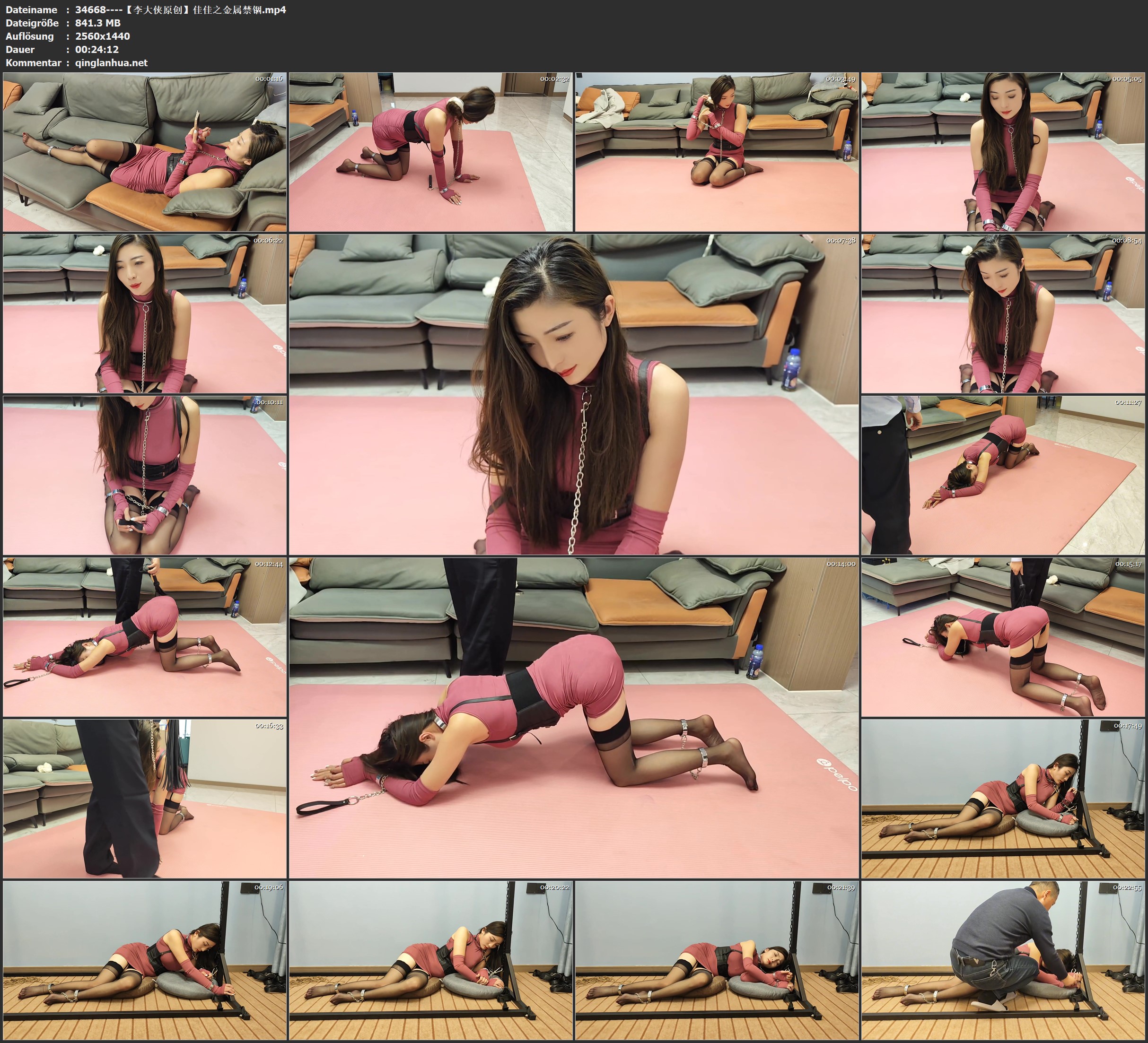 佳佳第一次带上金属项圈,带上手铐脚铐,对她进行了采访,非常精彩,具体内容可以看视频,当然鞭打是少不了的,大腿和屁股都打红了,视频里面清晰可见,叫声好听,就要多听,最后给禁锢在单独的房间,栓在龙门架上,这次禁锢了一整天