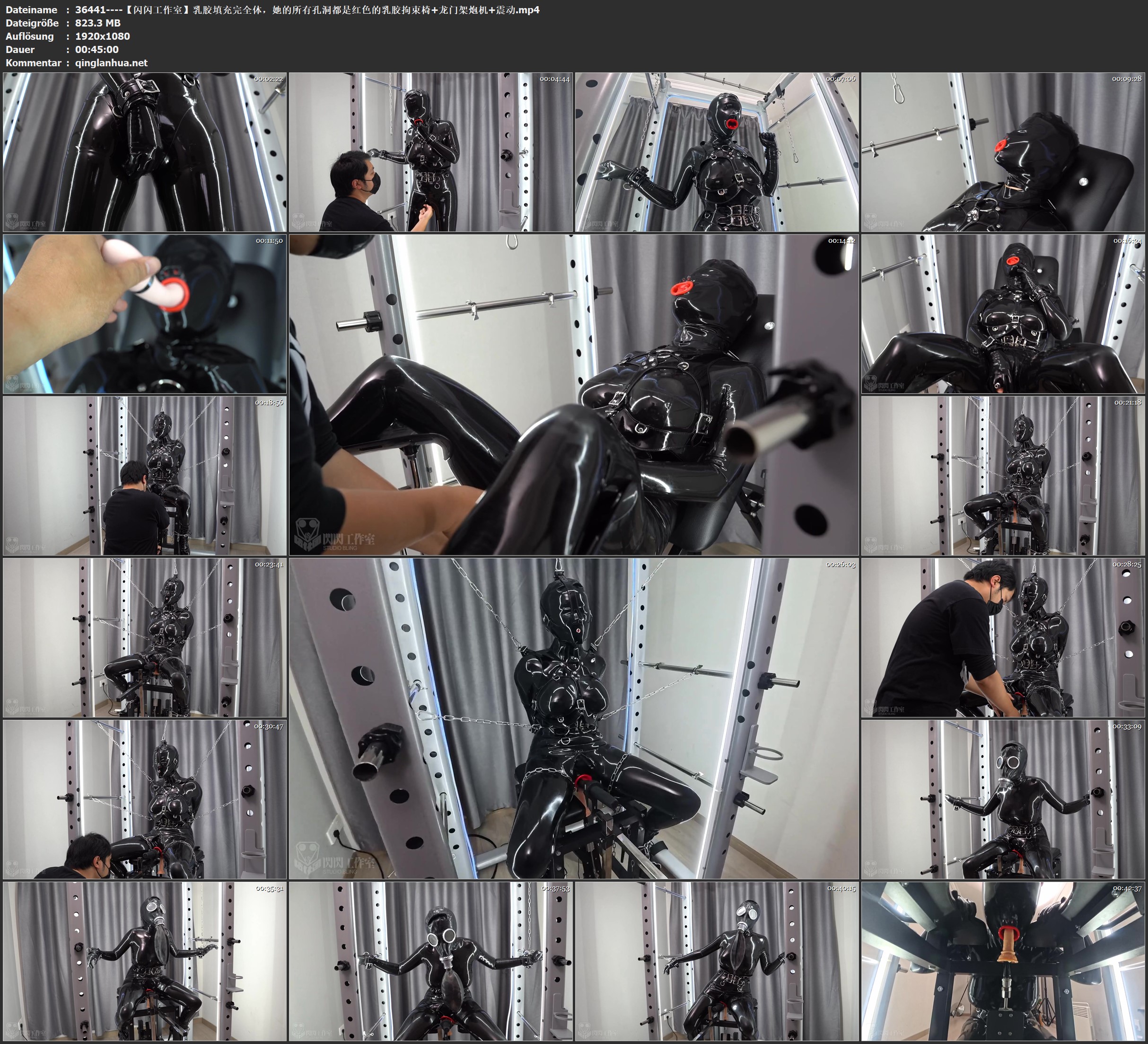 【闪闪工作室】乳胶填充完全体,她的所有孔洞都是红色的乳胶/拘束椅+龙门架/炮机+震动/
