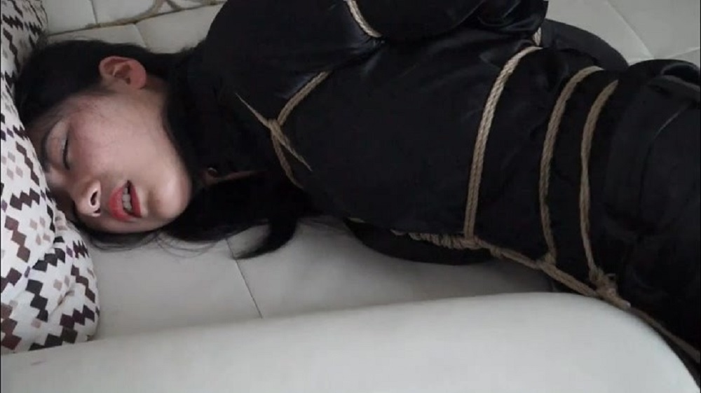 主人脱下了董倩的外套,拿出了绳子,准备开始捆绑董倩