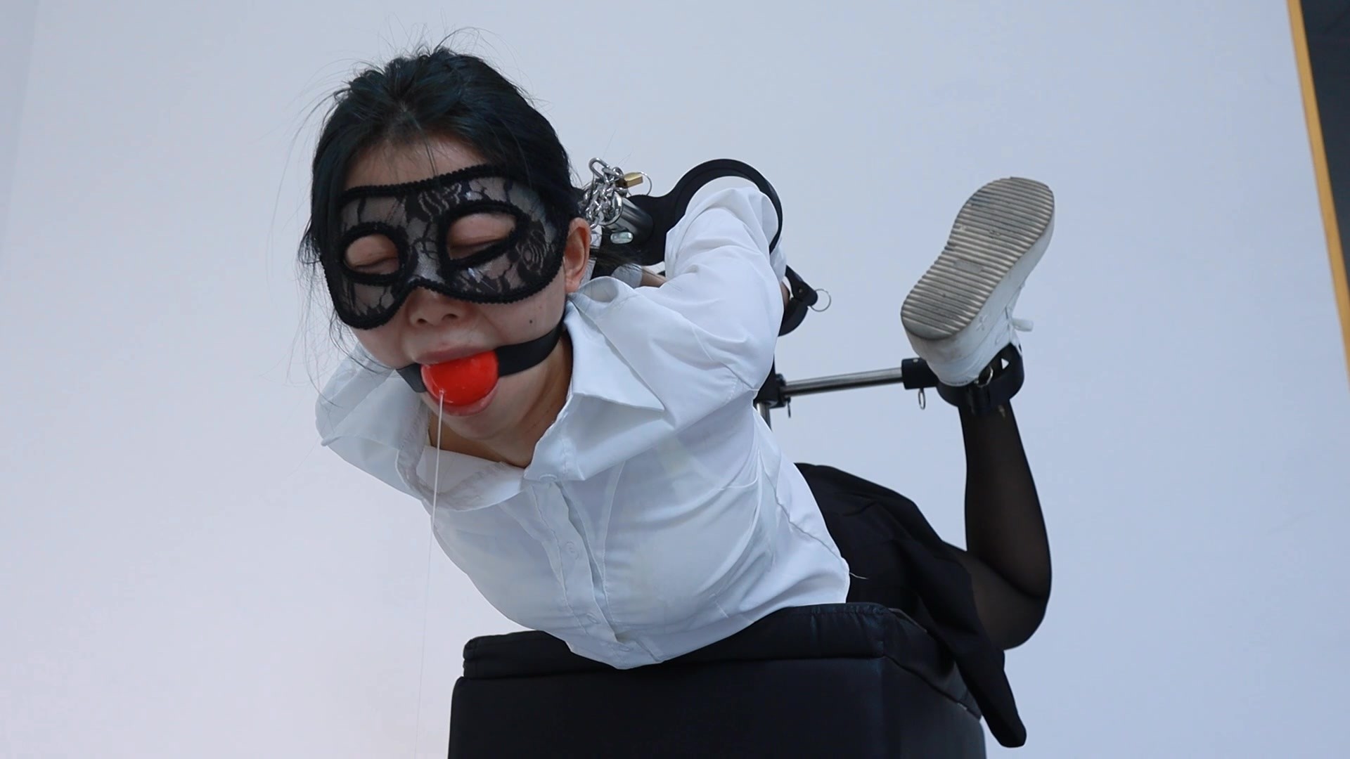 【缚心室】肉丝双马尾女学生体验新玩具炮机椅,后手直臂固定连头