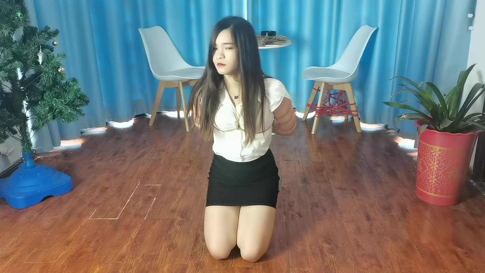 洛儿和老师玩游戏,输了要绑起来罚跪,结果可怜的洛儿被被五花大绑紧紧捆绑跪在坚硬的地板上罚跪,最后跪在办公室角落跪了一个多小时…