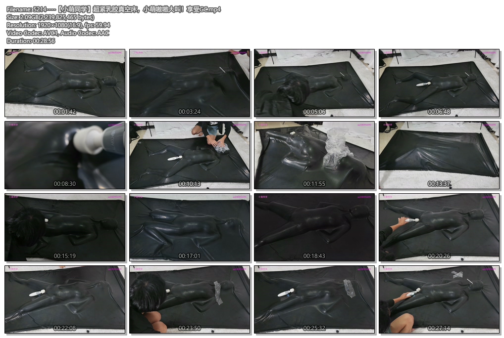 时隔一会小萌又想进入乳胶真空床了,这次我调整了一下,让真空床吸的更加完美,可以完全看清楚被吸紧的只剩下了轮廓。小萌因为折叠腿的原因一直嗷嗷大叫,我就惩罚她让她在里面保持这个动作。我用吸管防止漏气,不用再为马上漏气而烦恼了,最后小萌换上了个舒服的姿势我让她慢慢的GC了...就是出来的时候跟我说耳鸣了