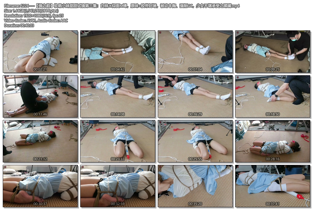 【绳之韵】软萌小妹甜甜试镜第三集:白袜JK仰面M缚,原味+胶带封堵,被动丰胸、强制GC,少女不堪承受之蹂躏