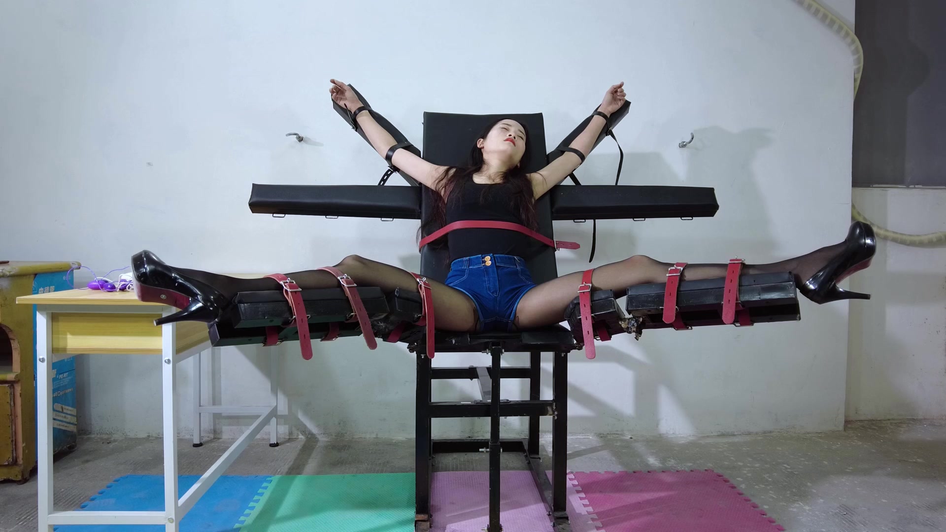 【缚心室】80多斤女学生的拘束架折磨小合集,啵啵贝VS炮机,两种