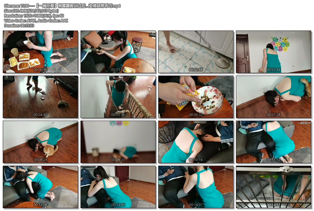 韩露露教训过后非常乖巧,很主动讨好主人,扫地、拖地、做饭、等等各种家务,还会趴在地上吃自己的食物。最后睡觉关在笼子里。