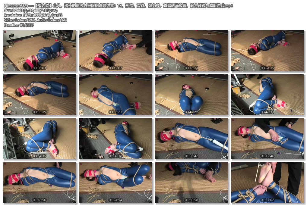 【绳之韵】小凡,漫长的蓝胶衣极限捆虐最终章:TK、刑责、双跳、强力棒,直臂驷马放置,剥衣蹂躏与羞耻游戏