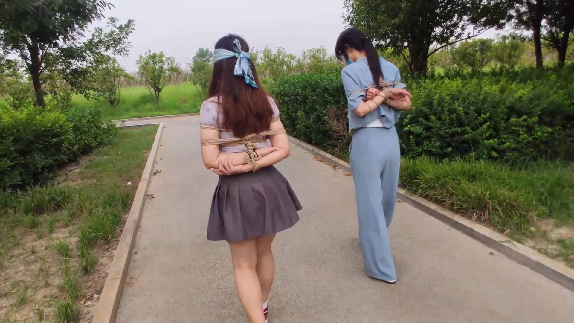【一绳所爱】米粒、悠悠公园玩捆绑偶遇老大爷旁观