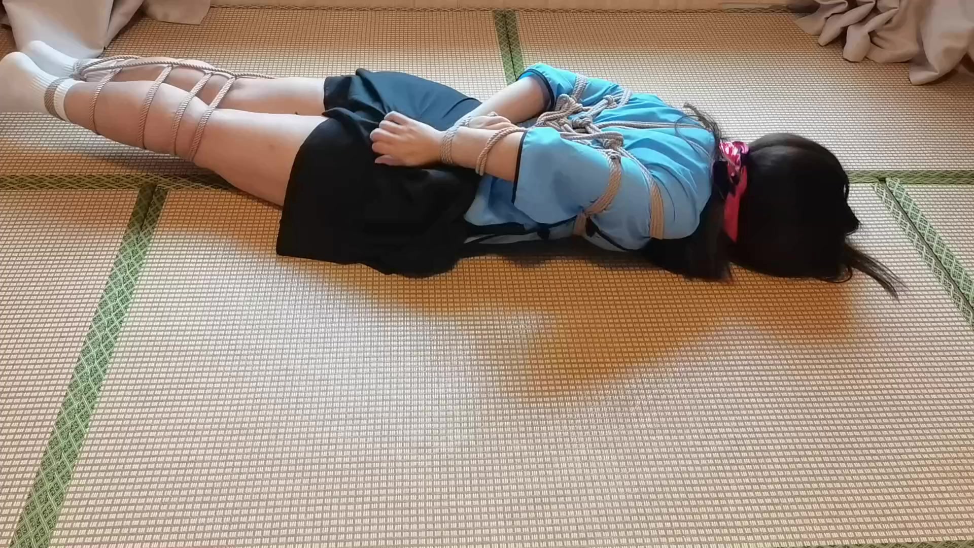 米粒穿五四装被绑起来了,还被用一整条丝袜堵嘴。逃脱后又被抓了回来。