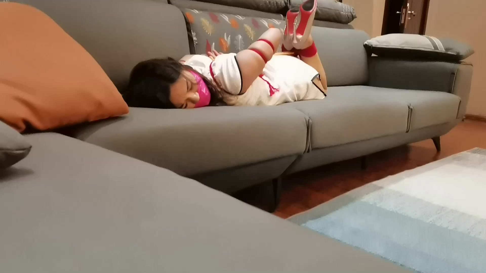 白领洛儿一个人在家玩手机,歹徒悄悄潜进房间将洛儿迷晕,将其捆绑堵嘴,手脚被捆绑的洛儿无助的挣扎捆在身上的绳子,最终成功逃脱。