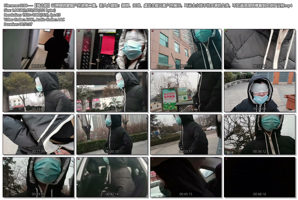 【绳之韵】云婷捆绑蒙眼户外游第二集,新人大冒险:捆绑、口球、虐足主题元素户外展示,耳朵太小挂不住口罩的女孩,不知道滴滴师傅看到口球了没有